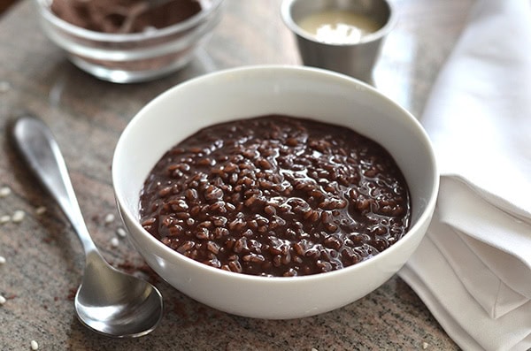 Champorado is a delicious kind of chocolate rice pudding eaten in the Philippines. This is not to be confused with the Mexican champurrado, which is more of a hot chocolate drink.