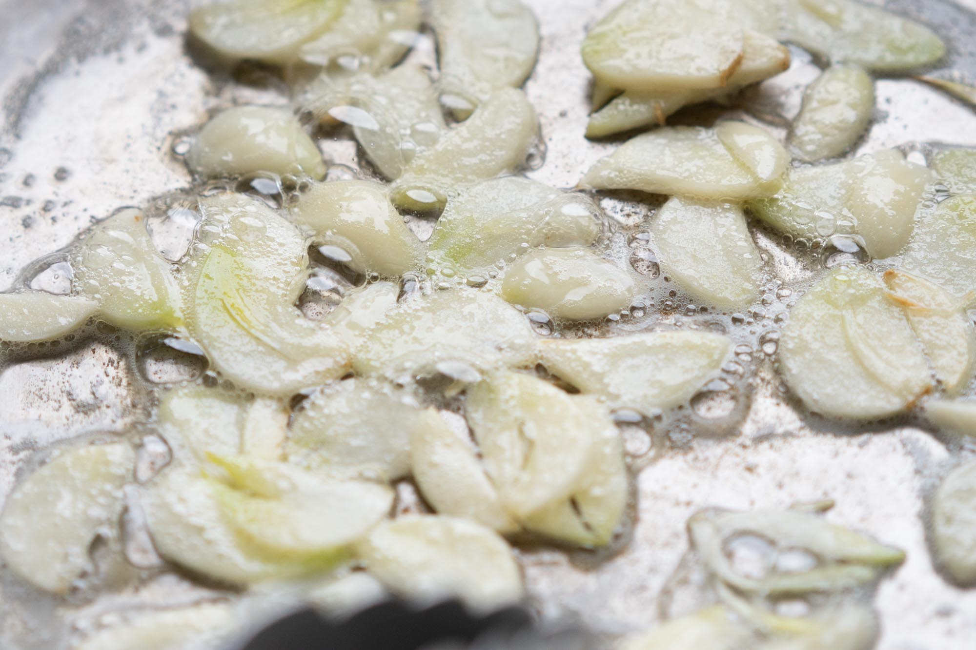 simmering garlic slices in butter