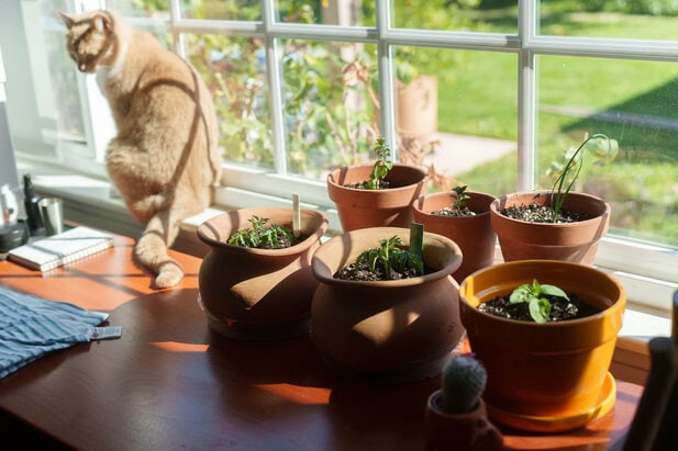 8. Move the potted herbs to their new home, next to a sunny window or lamp.