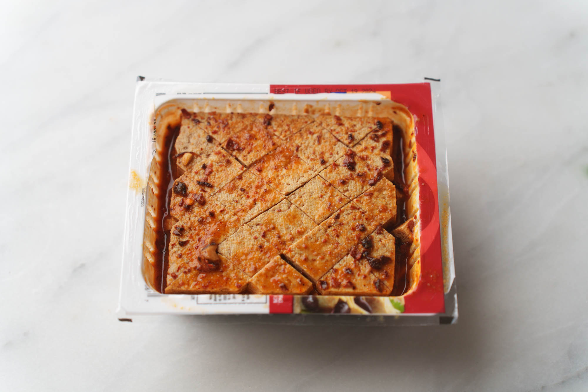 marinating tofu in original plastic container