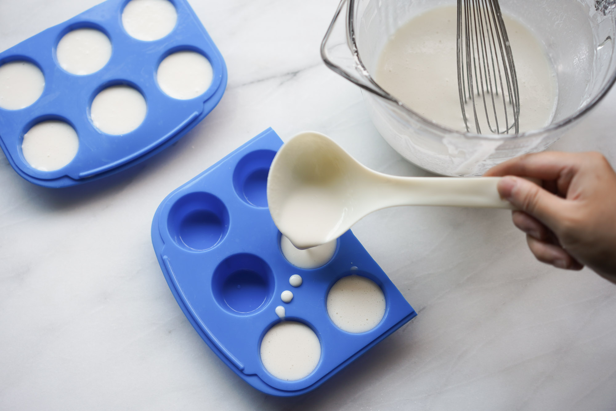 4. Use silicone mini muffin molds. Using silicone molds is the easiest way to steam and remove the puto. I purchased a mini silicone muffin mold and cut it in half to fit into my steamer. You can also buy individual molds.