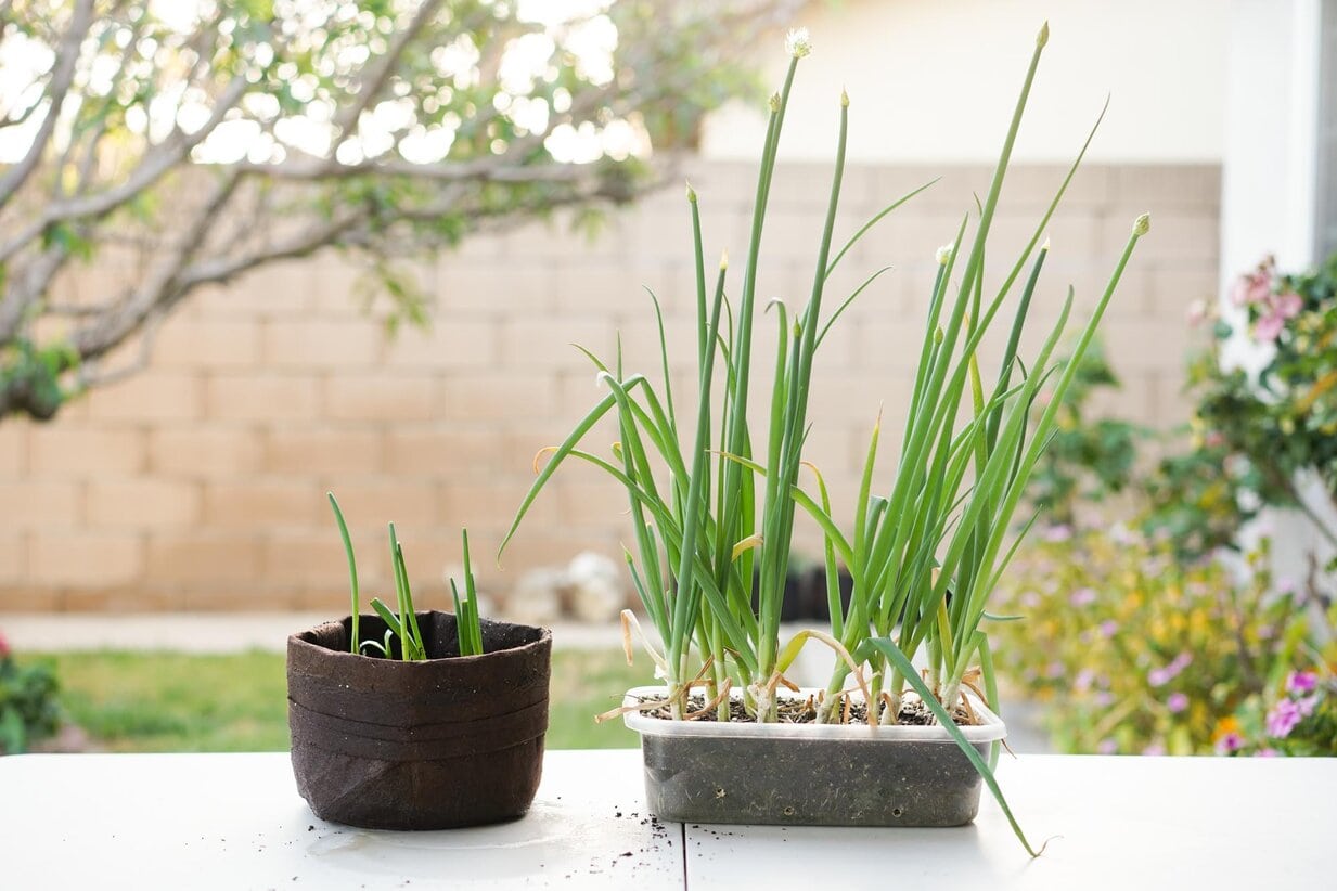 As an added benefit to replanting green onions in soil, you can also grow green onion scapes! I was pleasantly surprised to find that scapes were growing in my green onion containers after regrowing them for more than a month.