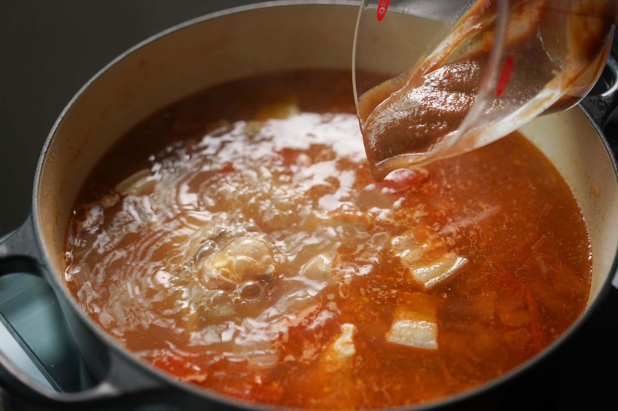 adding tamarind paste to the pot